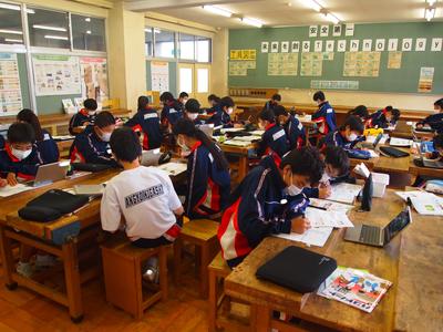 技術の授業で1年生が、小松菜の栽培計画を立てる授業を行っていました。この寒い時期にどのような技術を使えばよりよく成長させることができるのか、GIGA端末を使いながら調べて計画書を作成していました。今後どのような技術を活用して、管理をしていくのか楽しみです。