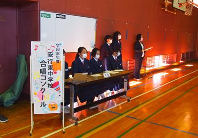 本日は2年ぶりに校内の合唱コンクールを開催しました。スローガンは「信じよう 私たちの仲間と歌声を」です。スローガンをもとに体育祭に引き続きクラスの心と声を一つにして、歌声を響かせました。どのクラスもこれまでの練習の成果が出せて、美しい歌声が学校中に広がっていました。